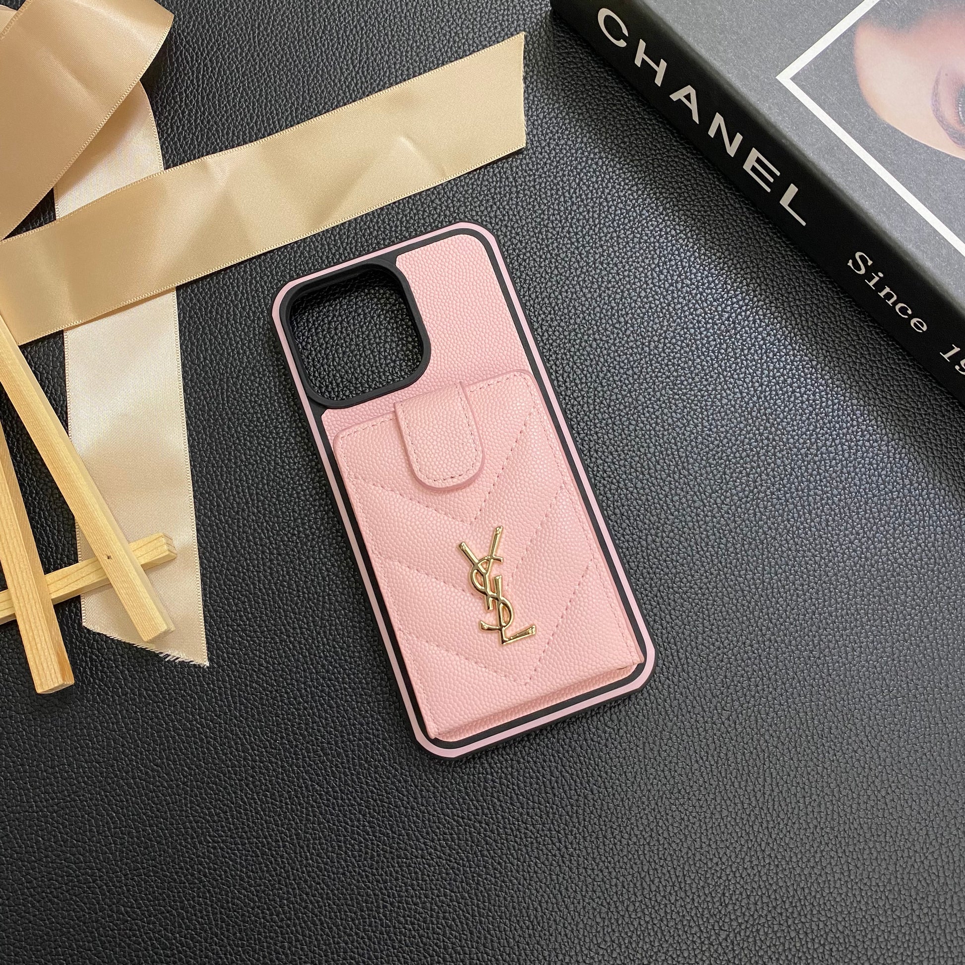 時尚宣言單品:這款配件是YSL羊皮iPhone手機殼,帶卡座,是一款時尚宣言單件,反映了您對奢華時尚的挑剔品味和欣賞。