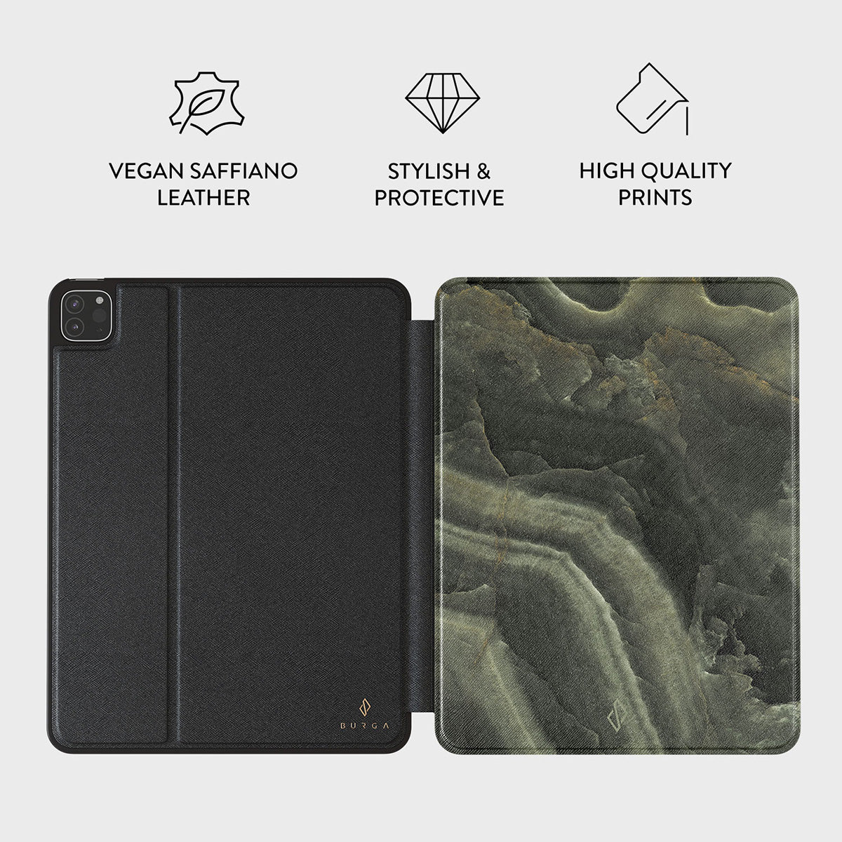 靈感來自綠色大理石iPad Pro 12.9(第6/5代)對開本保護套,攜帶在不祥的薄霧森林中發現的未開發土地的神秘感。該保護套將流行的大理石趨勢與重型保護相結合,成為您設備的獨特伴侶。
