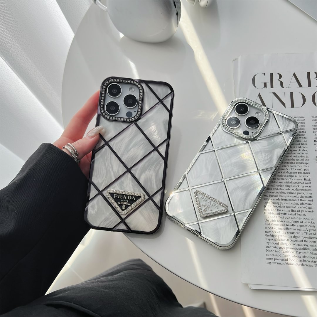 閃亮的普拉達鑽石絎縫蘋果iPhone手機殼