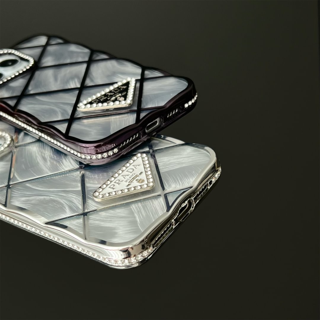 閃亮的普拉達鑽石絎縫蘋果iPhone手機殼