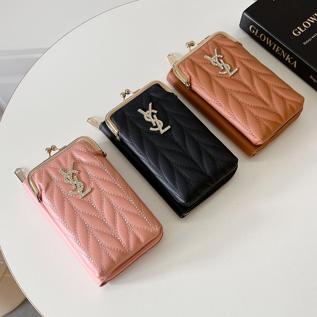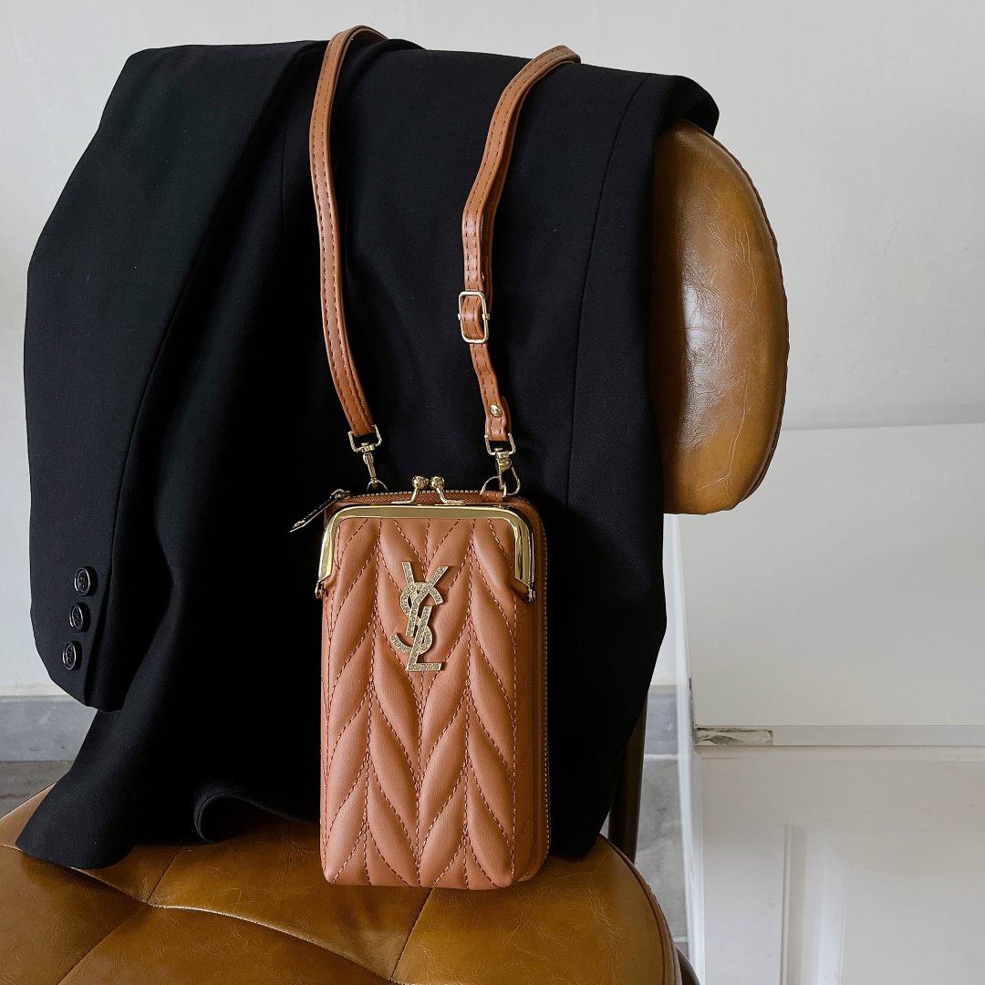 YSL絎縫皮革斜挎包手機錢包卡座腋下包